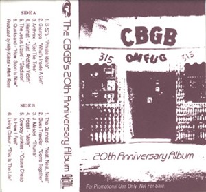 ![]() ![]() | CBGB’s 20th Anniversary Not released in North America, scheduled for 1994 All songs on this album were recorded live during the CBGB’s 20th anniversary celebration Dec. ’93 – Jan. ’94. The top picture is a copy of a promo tape, the bottom pictures are from the CD. Cassette Side B, track 5, CD Track 11: ‘Cause Cheap Is How I Feel ![]() Photo of Margo from inside the CD artwork. BMG Australia CD 74321226062 |