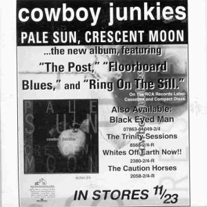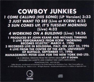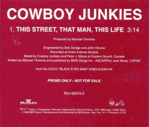 ![]() | Cowboy Junkies Promo Release 1992 1. Dead Flowers 2. Captain Kidd 3. Take Me 4. ‘Cause Cheap Is How I Feel Available only as a special item from UK HMV stores when purchasing Black Eyed Man RCA UK: COWBOY1 |