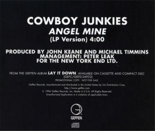 ![]() | Angel Mine Released 1996 1. Angel Mine (LP Version) 4:00 2. Now I Know (LP Version) 2:19 3. Carmelita (Previously Unreleased) 3:47 Carmelita was written by Fred Eaglesmith Carmelita is also available on Maple Music One Compilation released in 2002. Geffen GED 22162 |