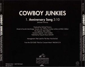 ![]() | Anniversary Song Promo Release 1993 1. Anniversary Song 3:10 2. Crescent Moon 5:01 3. Leaving Normal 3:55 Tracks 1 and 2 from Pale Sun, Crescent Moon Track 3 was unavailable until released on Rarites, B-Sides and Slow Sad Waltzes. RCA Canada: KCDP-51195 |